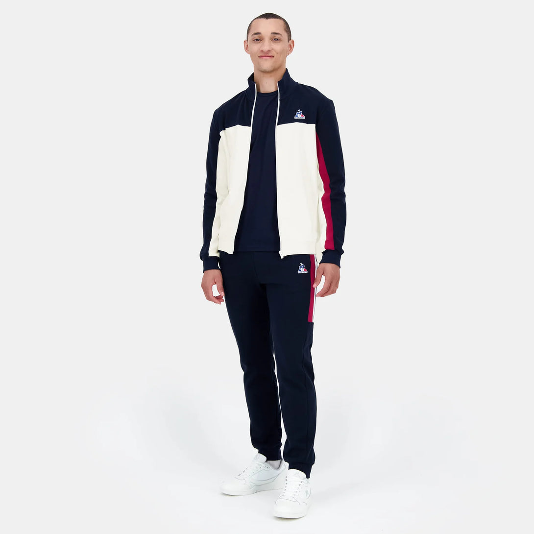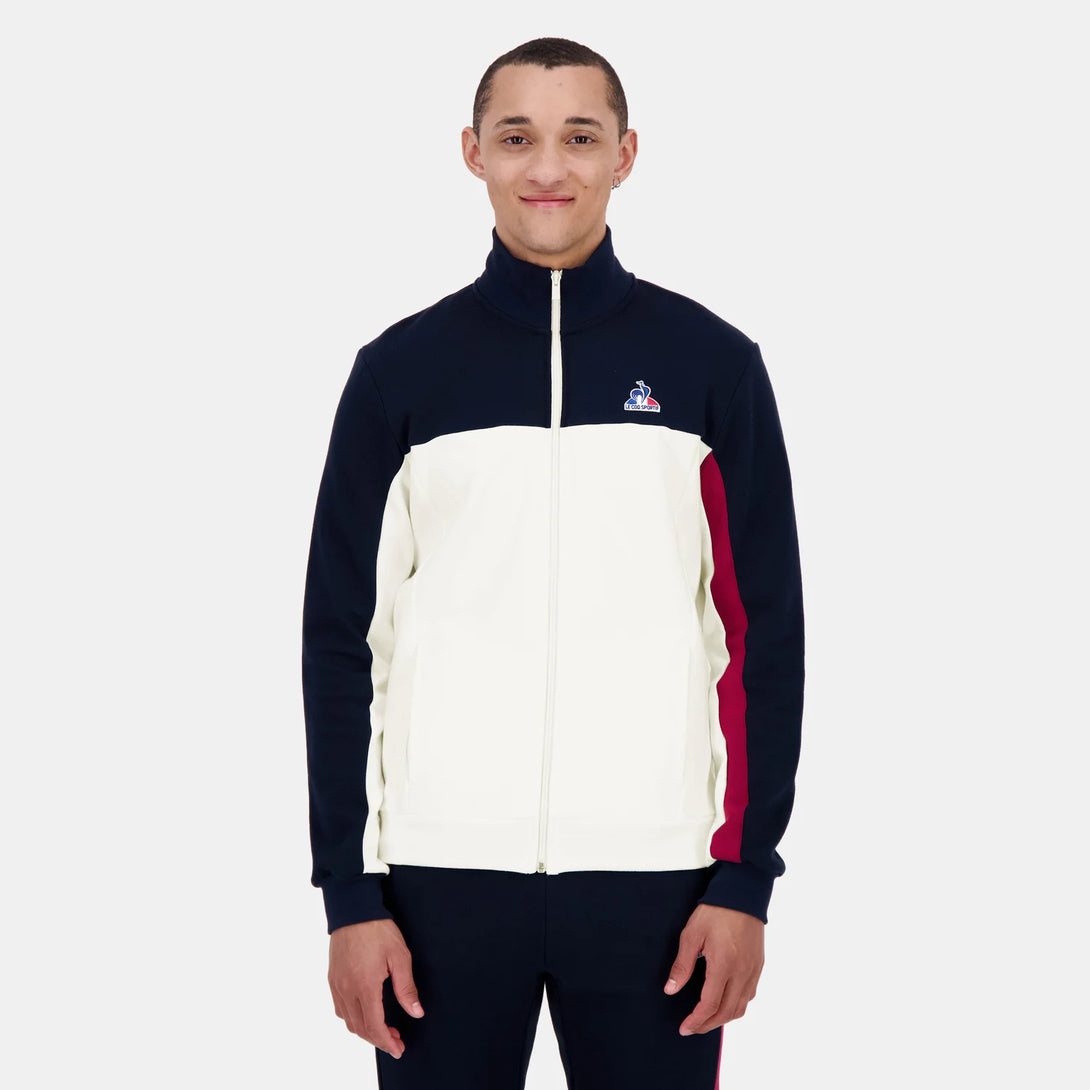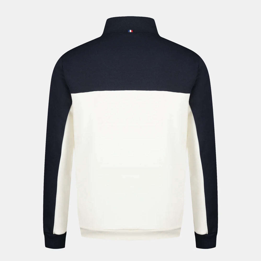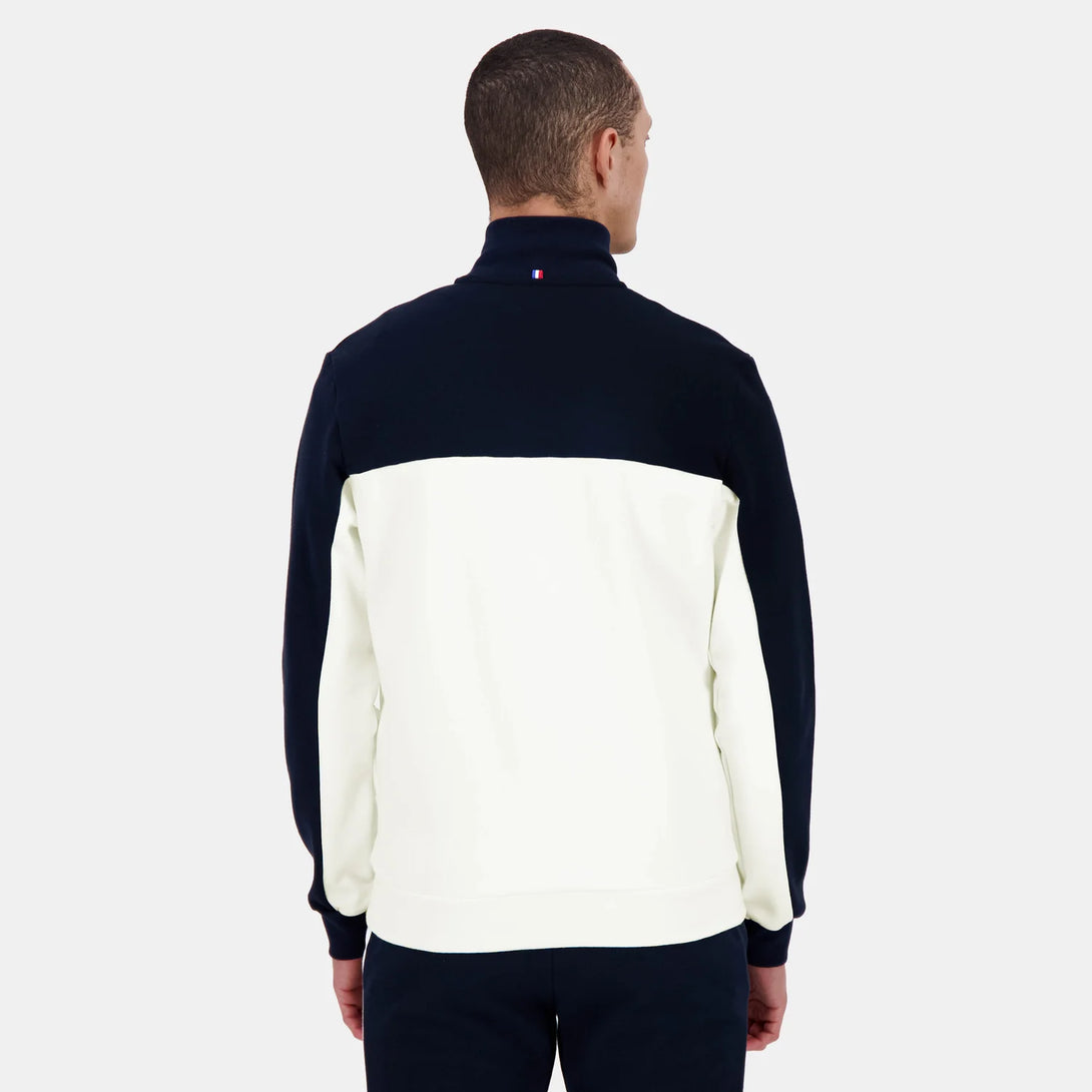 Este buzo con cremallera para hombre combina diseño y funcionalidad. Confeccionada en tejido doble cara de 300 g, 85 % algodón y 15 % poliéster, ofrece suavidad y comodidad duradera. Su cremallera blanca resalta un estilo deportivo, mientras que los puños acanalados en cuello, bajo y mangas aseguran un ajuste óptimo. El logotipo tricolor bordado en el pecho refleja la herencia francesa de la marca, añadiendo un toque distintivo. Ideal para looks casuales o deportivos, es perfecta para combinar con pantalones de corte regular de la misma colección.