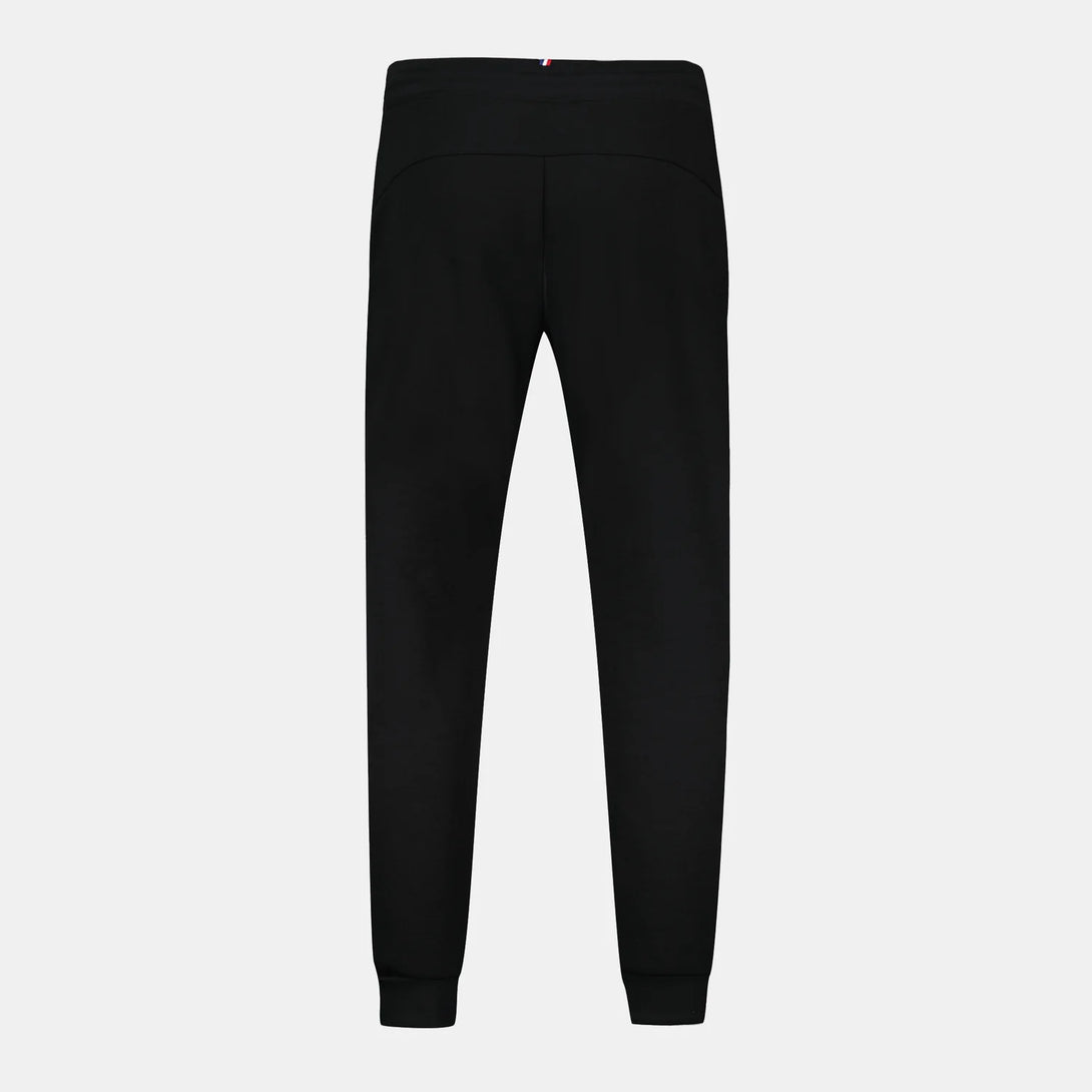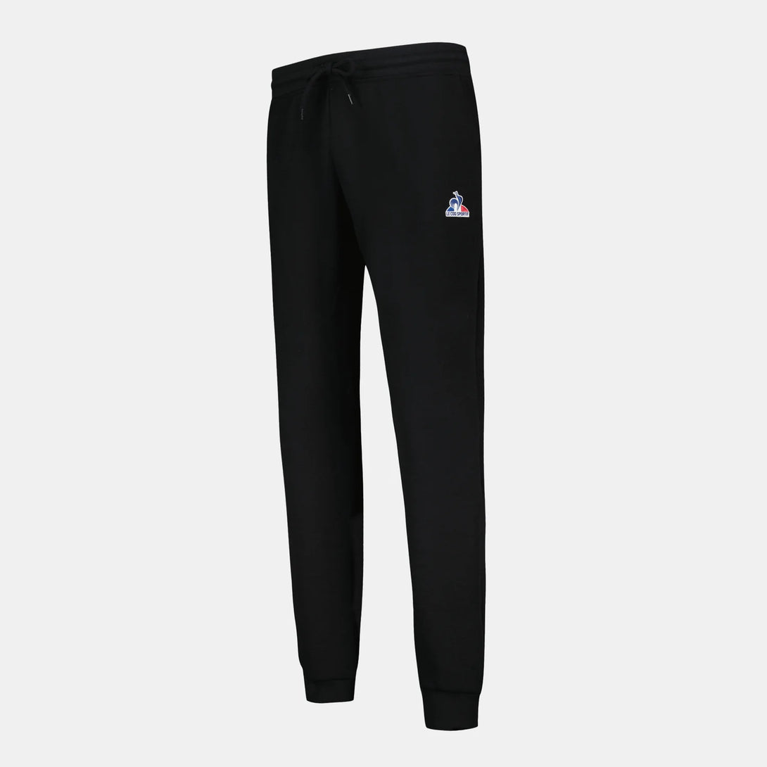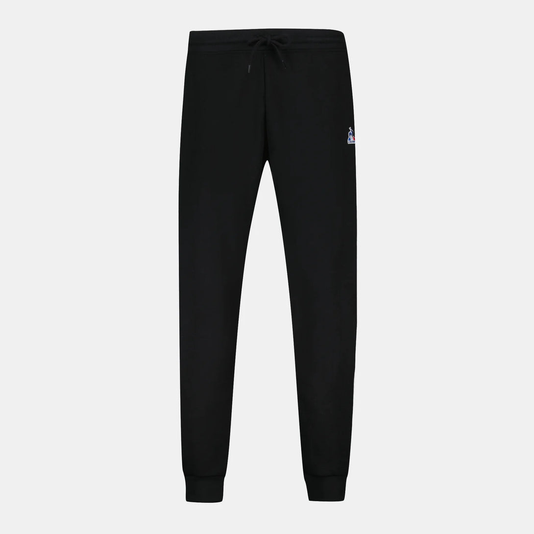 Este pantalón negro para hombre combina comodidad y estilo clásico, confeccionado en tejido de algodón y poliéster de 300 g doble cara. Su corte regular ofrece un ajuste perfecto y suave, mientras que la cintura elástica con cordón exterior asegura un ajuste adaptable. Incluye dos bolsillos laterales inclinados para funcionalidad, ribetes de canalé 1x1 en cintura y bajos que aportan durabilidad, y la insignia bordada "Logo du Coq" en la pierna izquierda destaca con elegancia. Ideal para uso diario con un diseño cuidado y materiales de alta calidad.